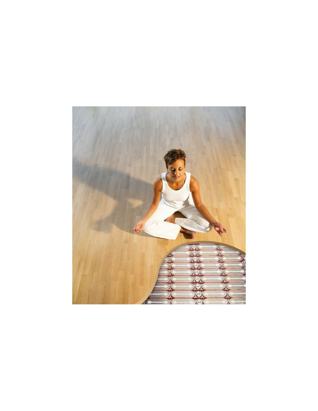 Parketta alatt a speciális DEVIcell™ Dry elem egyszerre rögzíti a kábelt, biztosítja az optimális hőleadást és hőszigetelésként is funkcionál. A rögzítő-panellel egyenletes, 10 cm-es kábeltávolság érhető el, a beépített teljesítmény pedig 100 W/m² lesz.