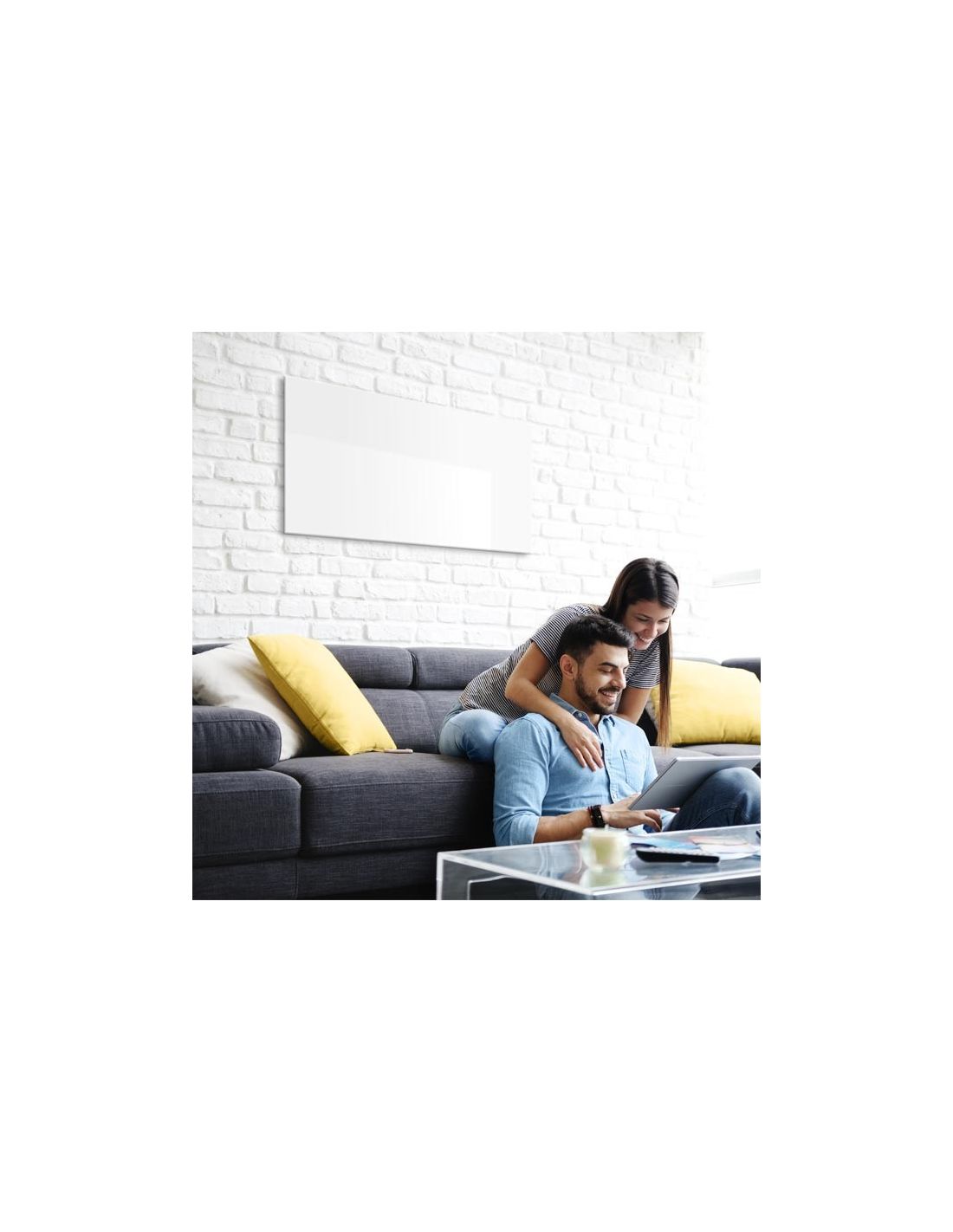 A 600W-os PREMIUM fehér üveg infrapanel 90×60 cm-es méretével különleges megoldás fürdőszobákban, exkluzív kivitelű helyiségekben vagy akár kereskedelmi terekben is. Keret nélküli kivitelének köszönhetően megfelel a legtöbb lakberendezési trendnek és minőségi elvárásnak.