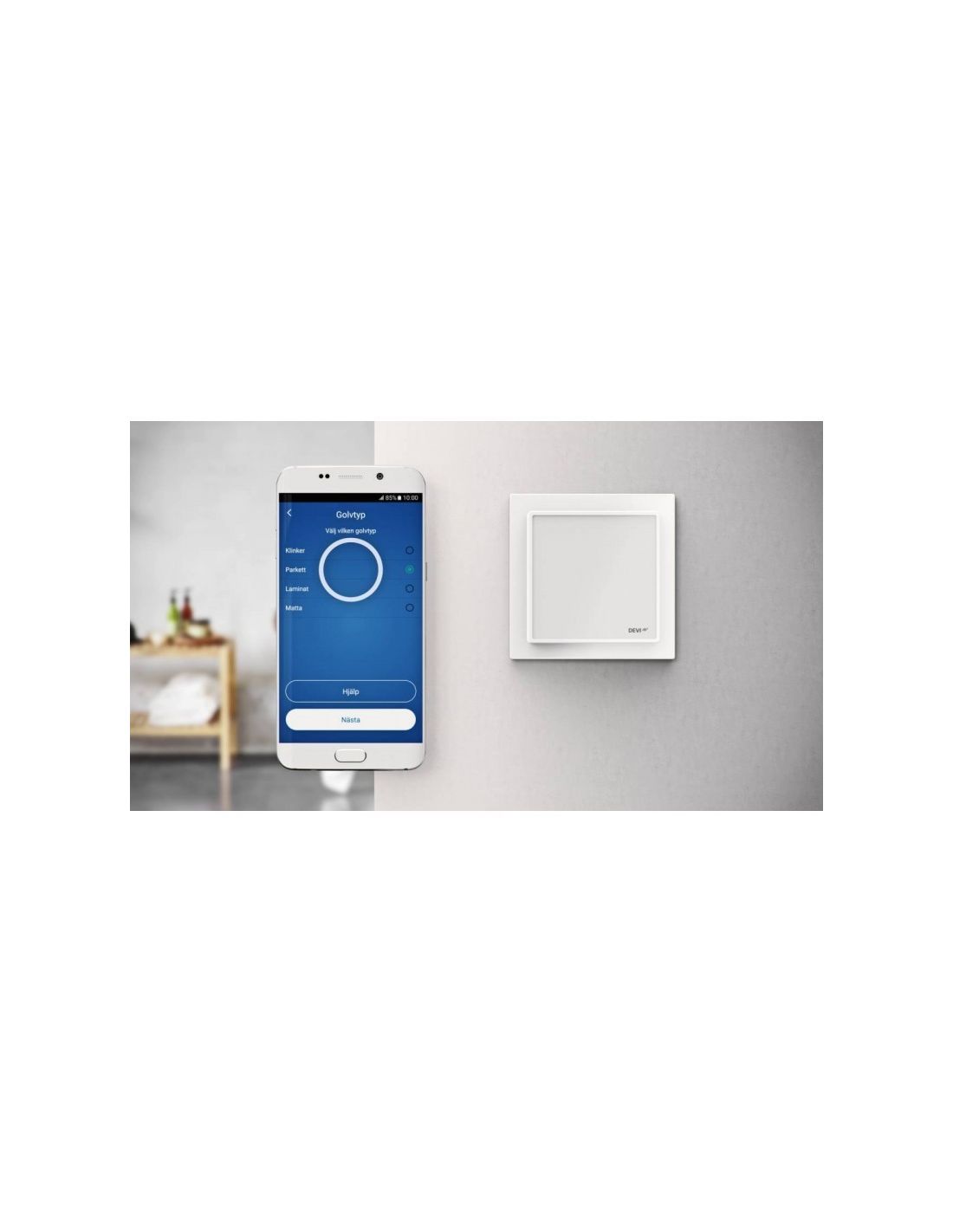 A DEVIreg™ Smart termosztát mobilalkalmazással az interneten keresztül is vezérelhető. Funkciók: beállítható, hogy a termosztát a padló, a levegő, vagy mindkettő alapján kapcsolja a fűtést. Intelligens időzítővel ellátott készülék, állítható takarék hőmérséklet, állítható max. és min. padlóhőmérséklet, fagyvédelmi üzemmód, gyerekzár, fogyasztásmérő stb. A termosztát tartozéka a 3 m-es NTC érzékelő.